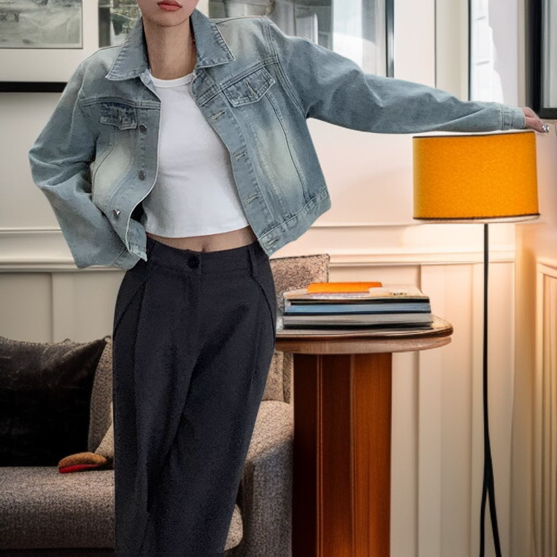 ● トレンド感溢れるルーズフィットデザインで、体型を選ばずスタイリッシュに着こなせるデニムショートコートです。