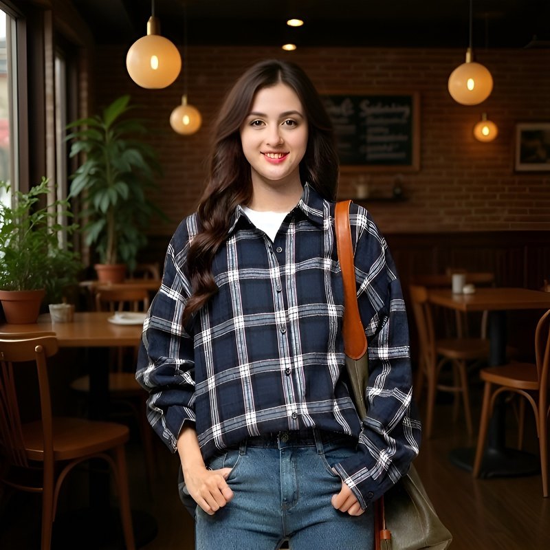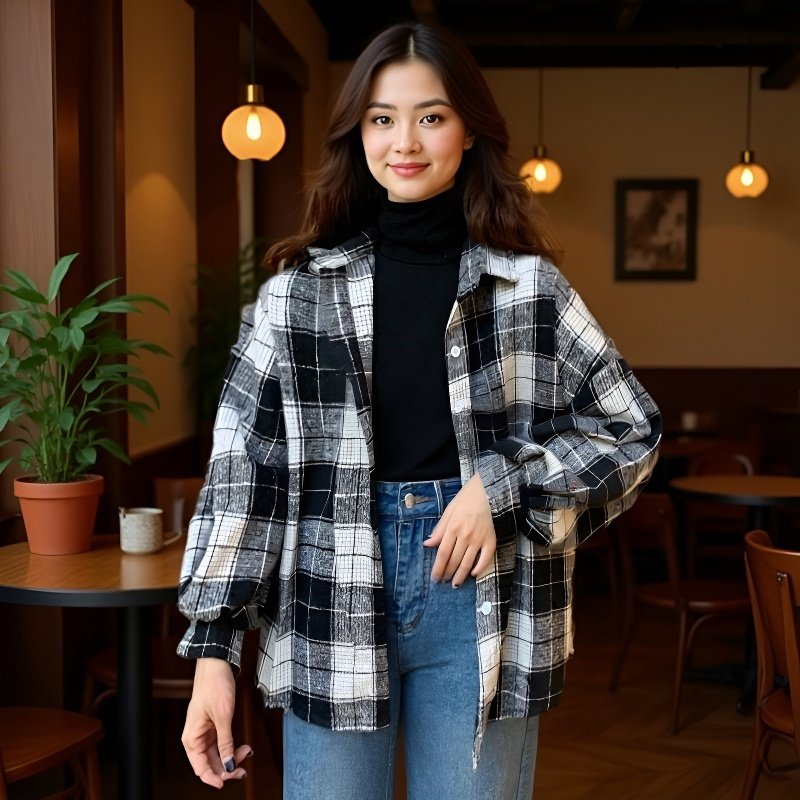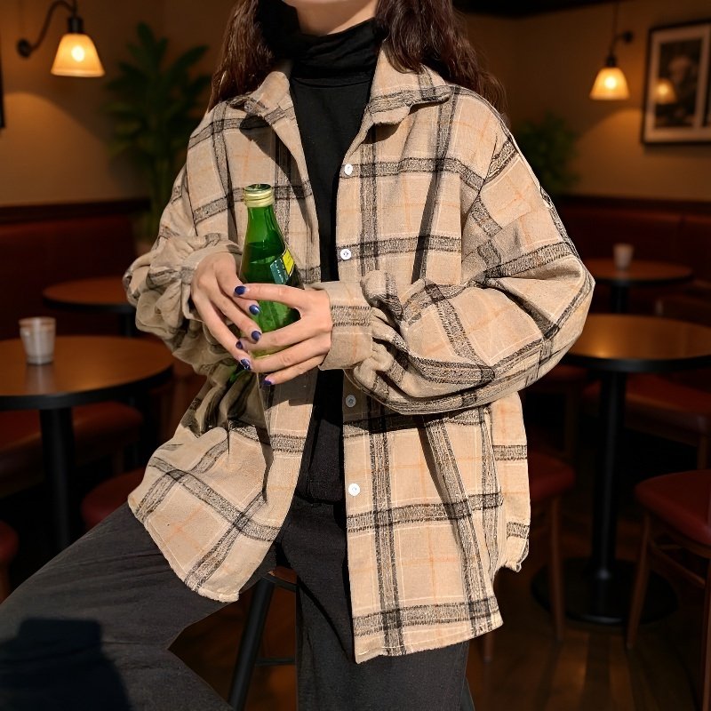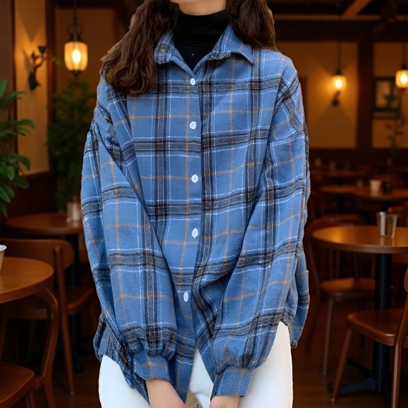 女性用カジュアルチェック柄フランネルシャツ