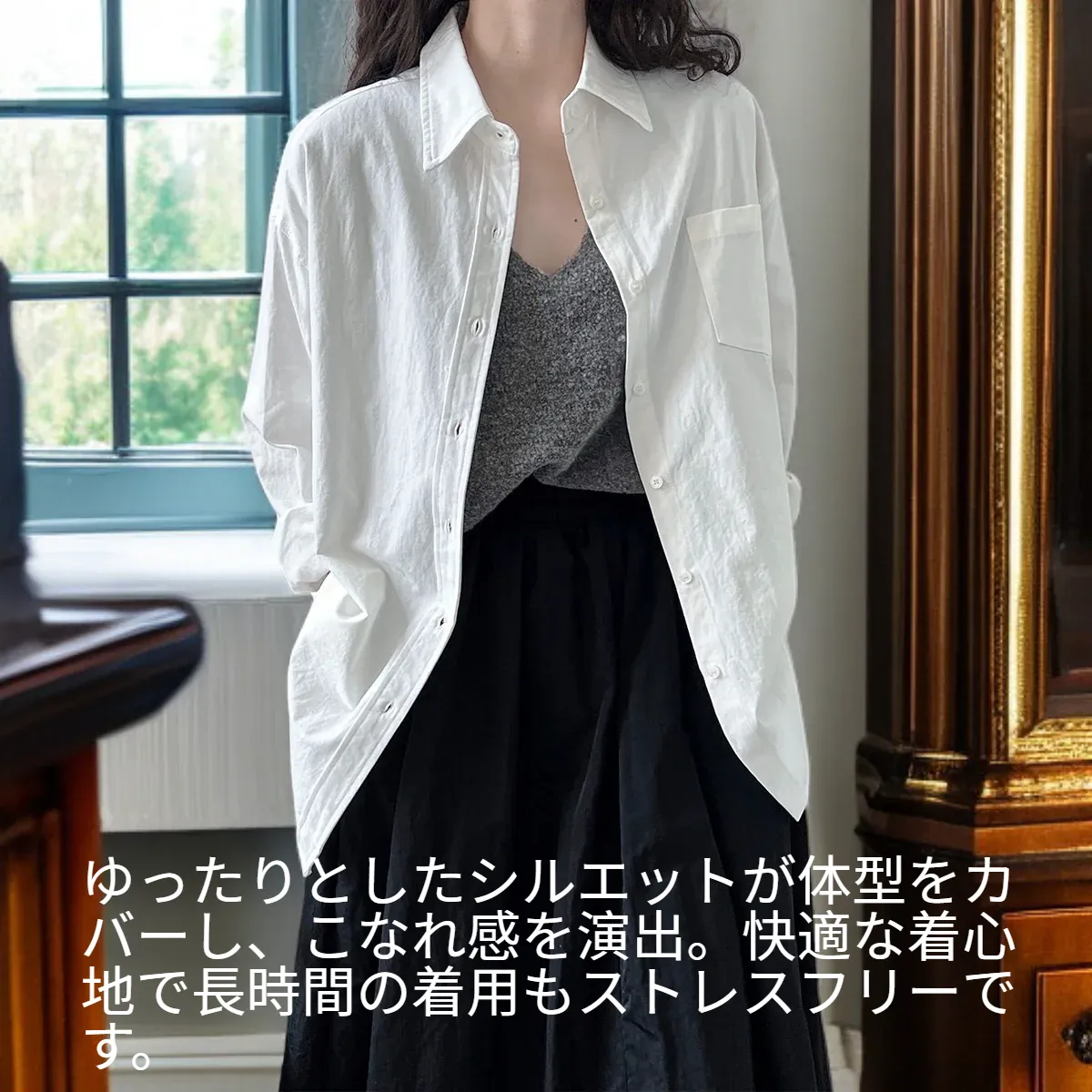 ● ゆったりとしたシルエットが体型をカバーし、こなれ感を演出。快適な着心地で長時間の着用もストレスフリーです。
