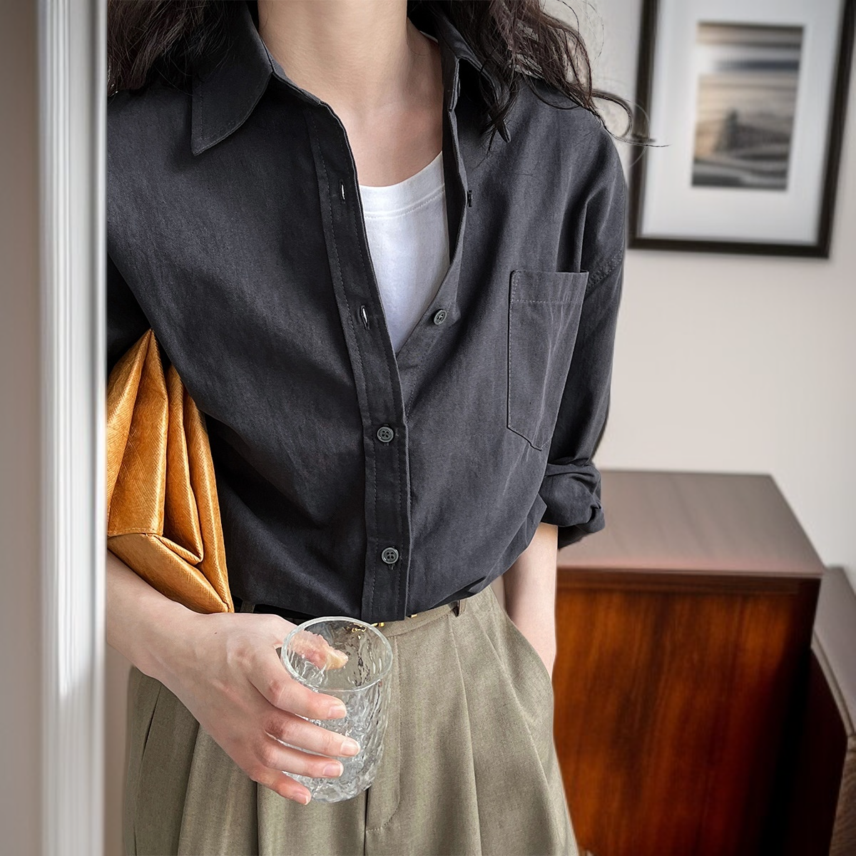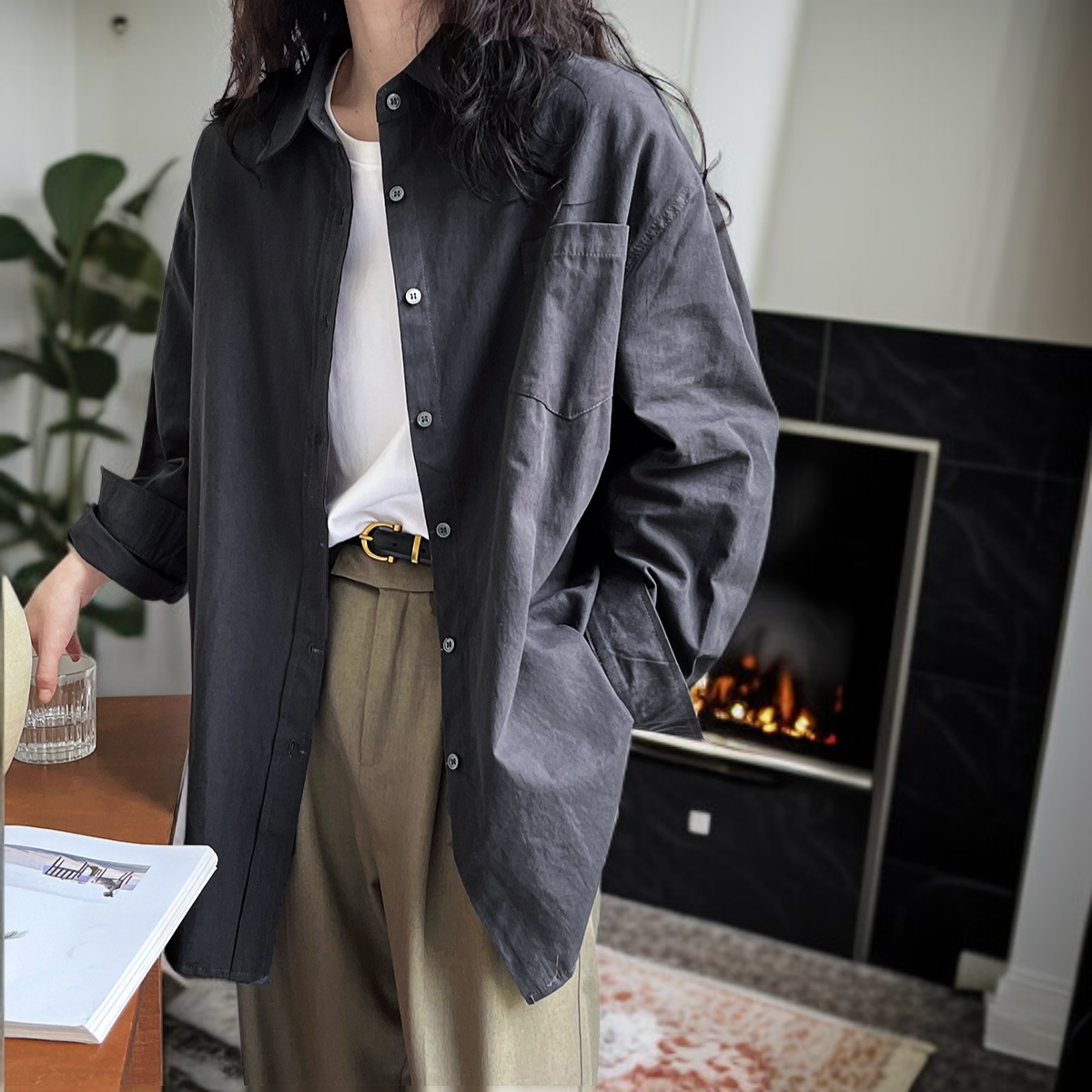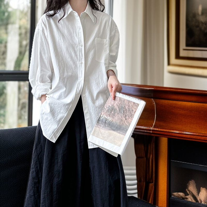 ● クラシックなオックスフォード素材を使用し、秋の通勤やカジュアルなアウトドアシーンにもぴったりな万能ワイドロングスリーブシャツです。